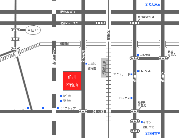 さて今日の話題は冷麦。贈答用や家で食べています。大矢知の前川製麺さんで作られる麺は腰があり、食べていると幸せな気分になります。map-big
